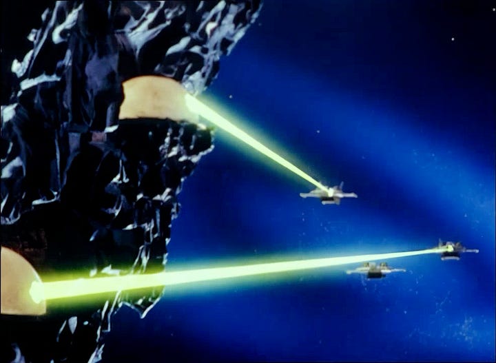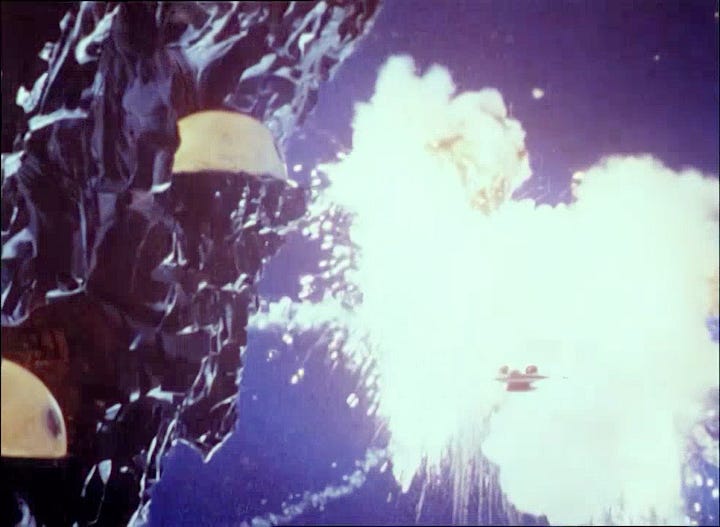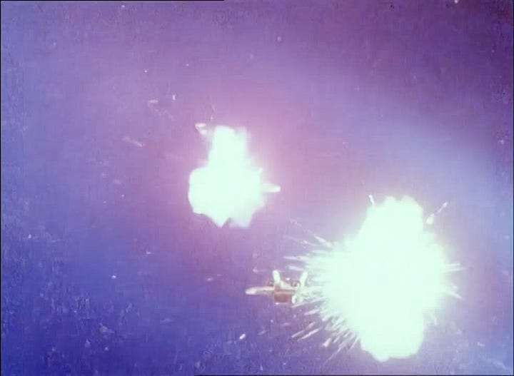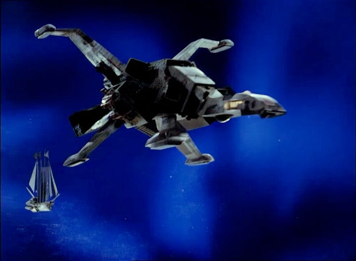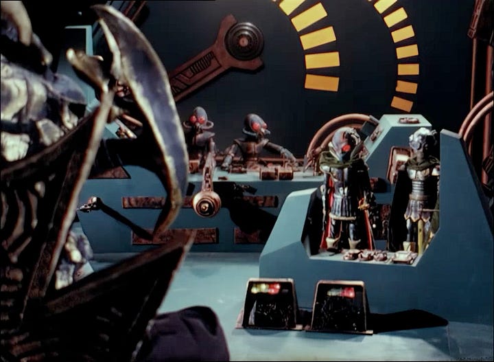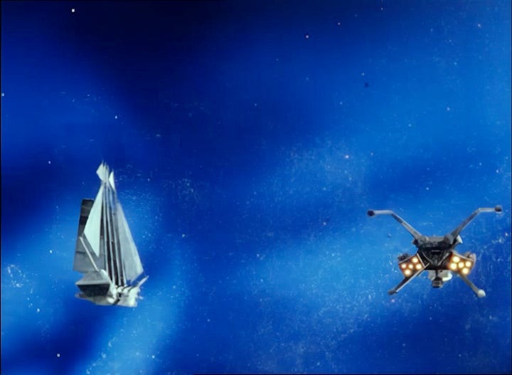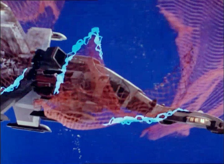 With a wave of his hand and a promise to “destroy you personally”, the Master somehow casts Lamia out. She disappears in a haze of lightning, fading out as swiftly as she faded in. The tone of these scenes is much more magical and unsettling than is typical for Star Fleet. What mysterious powers do Lamia and the Imperial Master possess to communicate in such a way over such long distances? How are they able to both intrude upon and repel each other? At this late stage, all of the mystical underpinnings of the narrative are now front and center in a spectacular and nearly supernatural battle of good and evil.