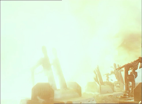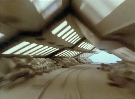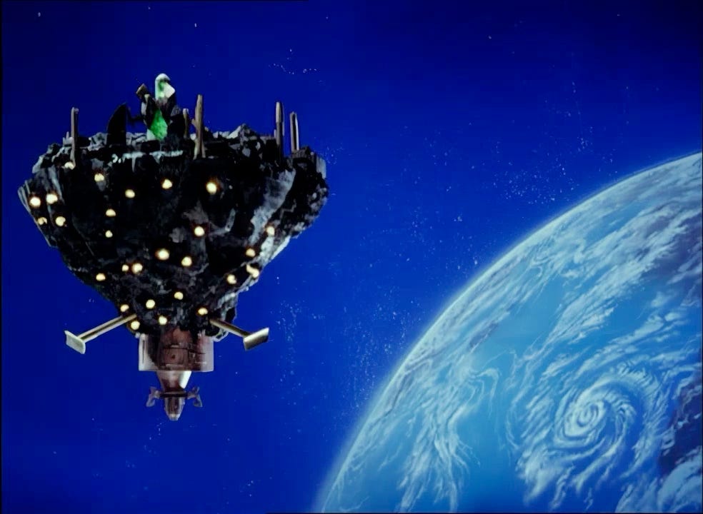 Lamia’s persepctive shifts to that of someone floating in space. She watches as the Imperial planetoid bears down overhead. Like X Bomber, the fortress is drenched in strange, swirling patterns of light.