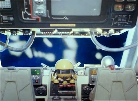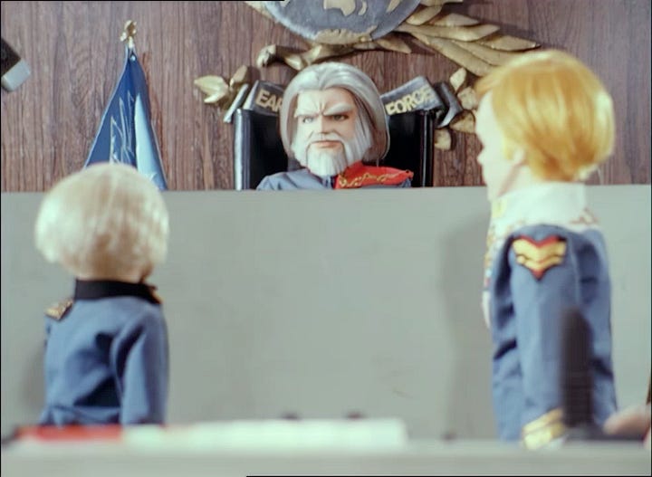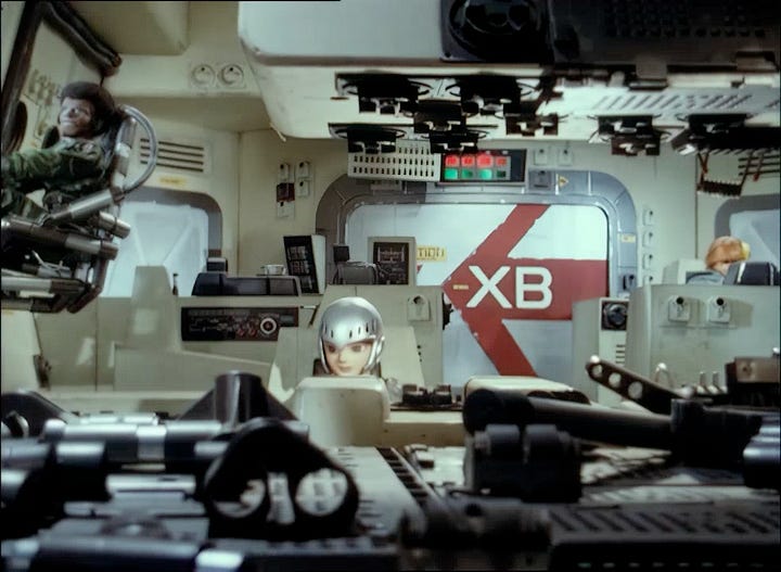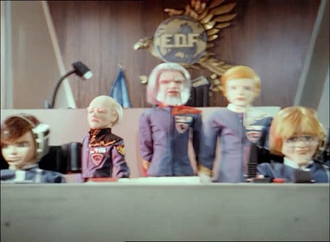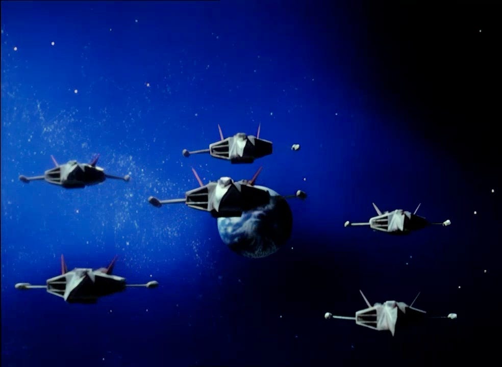 In a beat-by-beat echo of the invasion sequences seen at the beginning of Star Fleet, General Kyle sneaks up on his subordiantes only to join in the technical discussion. Clearly, they think they are facing an astrological phenomenon not an alien threat, which reminds me of how the Star Wars franchise dealt with the Death Star in the original film.