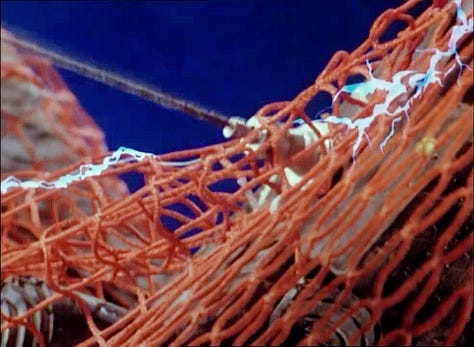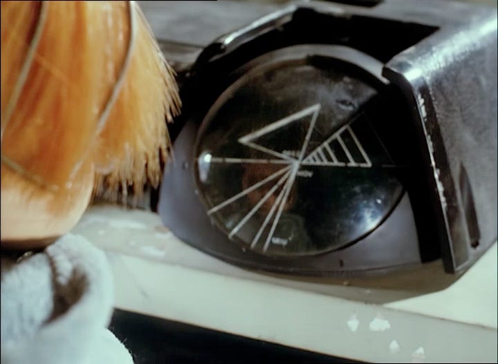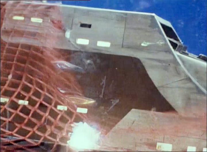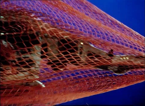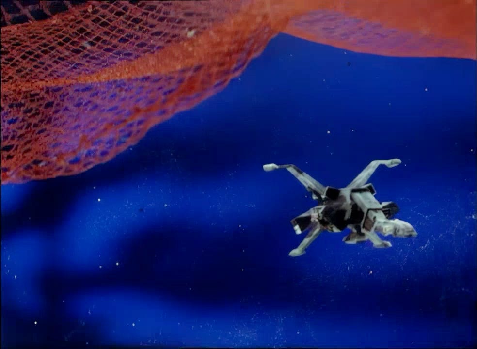 The net in question is a great set piece– highly inventive in concept and cheap in execution. The neon orange colour is a great choice too. I love the way it flings out and covers the camera with an electronic whir.