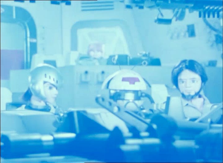 Just as the attack on Earth is commencing, we cut back to the struggling space cadets. Sadly, it is Professor Hagen, not Shiro, who makes the final decision to cut the computer on and divert power to the main shield. I think it would be great character development to put the focus on the helmeted hero.